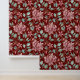 Burgundy Green Gold Floral Pattern Wallpaper