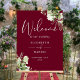 This elegant burgundy botanical greenery leaves wedding welcome sign can be personalized with your information in chic typography. Designed by Thisisnotme©