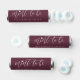 Cute wedding favor design with a minty pun features "mint to be" in white calligraphy script lettering with a heart dotting the "i," on a burgundy wine background. Personalize with your names and wedding date. Sweet play on words makes a unique and memorable wedding favor!
