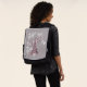 This Bold Face backpack with a interchangable front face has an illustration in burgundy of the Eiffel Tower in France surrounded by white daisy flowers on a gray background with the text Oh Paris.