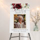 Elegant burgundy and ivory white floral photo funeral memorial / celebration of life large foam board sign. Personalize it easily and quickly, simply click the "Edit Using Design Tools" button to modify the text, wording, font style, font size, font color and to arrange the photograph. You can also add or remove text, and move or remove images. Coordinating items are available in-store. (c) Heavenly Paperie