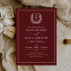 Burgundy Leafy Crest Monogram Elegant Wedding Invitation