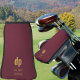 Personalized golf putter head cover. Your initials are lettered in modern oversized typography and you can also add either your name or your golf club's name. The design is printed with a leather textured look background in burgundy.