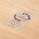 These beautiful acrylic wedding invitations feature an elegant yet rustic design with a wreath of burgundy colored watercolor leaves and modern script lettering. Available in both clear and frosted acrylic, these invitations are sure to wow your guests and leave a lasting impression. Wonderful way to invite your friends and family to share in your joy on your special day!