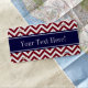 Burgundy and White Large Chevron Zig Zag Pattern, Navy BLue Ribbon Name Monogram Label