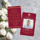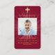 Burgundy light photo cross funeral prayer card