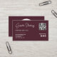 Promote your professional brand with this sophisticated burgundy business card featuring a refined script font, custom logo, and integrated QR code. The deep burgundy tone conveys confidence and luxury, while the clean layout ensures readability and balance. Perfect for consultants, stylists, and business owners seeking a polished, upscale impression.
