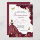 Burgundy Maroon Gold Floral Butterfly Quinceañera Invitation