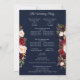 A beautiful wedding program for a beautiful wedding. Decorated with pink and burgundy peony florals, this pink blush and burgundy marsala florals wedding ceremony program will add elegant or modern details to your special day. Available with a white, pink, black, burgundy (maroon), and dark burgundy background. See our Burgundy Marsala Collection for all of the colors. with a navy background.