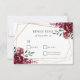 Customizable wedding RSVP card in clean white. Featuring pretty bouquets of burgundy, marsala red flowers with gold geometric frame.
