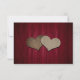 Rustic burgundy wedding RSVP card featuring a mason jar and two burlap hearts with initials against a rustic wood background. Easily personalize this cute rustic burgundy RSVP card online.
