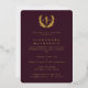 Burgundy MD Asclepius+Laurel Wreath Graduation Foil Invitation