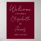 This burgundy red minimalist elegant script wedding welcome sign can be personalized with your information in chic typography. Designed by Thisisnotme©