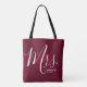 Burgundy Monogrammed Typography Mrs. Tote Bag