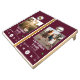 "Vintage Memories" Photo Album Theme Music Song Plaque Family Photo Cornhole Set with Burgundy Background!