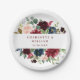 Burgundy Navy Blue Blush Floral Rustic Wedding Paper Plate.