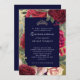 Burgundy Navy Blue Floral Quinceañera Invitation
