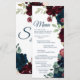 Burgundy & Navy Blue Flowers Wood Wedding Menu