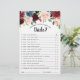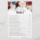 Beautiful floral boho bridal shower game card "How well do you know the bride?" features hand-painted watercolor floral graphics / roses in rich tones of navy blue Burgundy, Marsala and blush pink / peach and charming hand lettering / calligraphy style font. Please contact me for any help in customization or if you need any other product with this design.