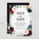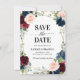 Elegant and modern romantic geometric watercolor floral save the date invitation card features a beautiful burgundy / marsala , blush pink, peach , navy blue watercolor roses with matching foliage on navy blue rustic wood background and gold frame. Perfect for a fall / midsummer wedding. Please find more matching designs and variations from my "blissweddingpaperie" store. And feel free to contact me for further customization or matching items
