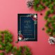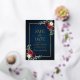 Watercolor burgundy red navy blush pink floral save the date card template with Gold frame and golden lettering with green botanical foliage and eucalyptus leaves in navy blue background. This beautiful easy to customize design can match easily with your wedding colors, styles and theme and it is a perfect choice for fall midsummer or winter weddings. You can find more matching designs from my store or contact me if you need any help in design customization.
