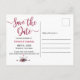 Burgundy Navy Floral Modern Photo Save the Date Announcement Postcard