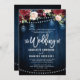Burgundy Navy Floral Rustic String Light Wedding Invitation