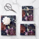Burgundy Navy Peony Floral Gold Shimmer Wrapping Paper Sheets