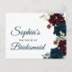 Burgundy & Navy Rustic Bridesmaid Proposal Postcard