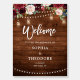 Watercolor burgundy red navy blush pink rustic country classy chic floral design with string lights and mason jars engagement party welcome sign template with green botanical foliage and eucalyptus leaves in wooden background. This beautiful easy to customize design can match easily with your wedding colors, styles and theme and it is a perfect choice for fall midsummer or winter country weddings. You can find more matching designs from my store or contact me if you need any help in design customization.