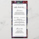 A classic dinner menu offering starters, main course and dessert selections. Titles are written in a classic black swash font calligraphy and the menu selections are in an easy to read block text. The menu is fully customizable for any occasion. An assembly of deep burgundy red, purple and navy blue peonies adorned with shimmering gold outlines against a dark rich navy blue watercolor canvas with splotches of gold sets the tone for this lavish wedding invitation. A lively script in gold announces your details and invites your guests to your wedding.