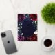 A burgundy navy wedding invitation featuring a watercolour painted scene of burgundy and navy blue peonies with shimmering gold accents against a deep navy watercolour background. This version is in GOLD FOIL so all the gold elements have real foil gold.