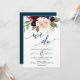 Yes, you can print on the back of your invitation for free! Most designs already have a corresponding design on the back that can be personalized using the Design Tool and going to Layers. This is a great way to communicate more information or further personalize your Burgundy Navy Wedding Invitation. The option is really up to you.
