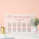 Welcome your guests and let them find their seats on this elegant acrylic sign with the beautiful "Our favorite people" phrase in modern handwritten calligraphy in an attractive burgundy-red tone. Use our 10 tables to add your guest names, and if needed, you can erase tables and even re-adjust the table's positions by selecting "Edit using Design Tool" with the button located at the end of the template text boxes, you can also increase the font size or reduce it to fit your amount of tables best. 12" x 18" is simply our default size, you can choose from several size options. "IMPORTANT NOTE: sign in a high-quality acrylic sheet with the text printed in black and a frosted faux look behind, providing a clear view of the text in all spaces, and giving you the frosted appeal for a fraction of the cost! Small sizes come with a wood block to stand, bigger sizes need an easel or surface to stand so they won't warp. This same sign design is also available in poster print and in foam board options, which you can find in our collection". Part of our "Modern Elegant Wedding and Events Signage" collection with a variety of coordinating products available. Dimensions of sign from demo photo with stand: 24" x 36"