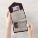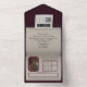 This unique wedding invitation design invites your guests to your travel wedding in style. The top page of the passport book contains your invitation, with a ticket appearing to peek out from behind it. Add your QR code to easily take guests to your wedding site. The bottom portion of the invitation tears off, giving your guests an rsvp postcard to return.