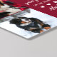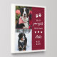 Pet memorial peel and stick wall tile with one featuring two photos of your beloved pet along with You left paw prints on our hearts in a charming typography design in white on burgundy with paw prints and hearts. Cute dog memorial peel and stick wall tile with custom text in white against a deep red background. Add your dog's name and years living. You left paw prints on our hearts wall art to honor your beloved dog.
