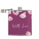 Elegant and stylish, this vinyl-wrapped flask features a rich burgundy background adorned with delicate pink petals and the heartfelt phrase "With Love." A perfect gift for weddings, anniversaries, or any special occasion, this chic and portable flask adds a touch of sophistication to your celebrations. Ideal for anyone who appreciates unique and personalized drinkware.