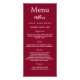 Birthday party menu card. Personalize and add a name, age, date and the menu. A burgundy background. White colored letters.