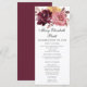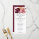 A pretty burgundy and pink rose floral border sets an elegant tone. The loved one's name follows in a traditional script font. The menu continues below in a combination of classic upright and italic fonts. Very easy to customize. Delete any courses that don't apply.