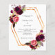 Burgundy pink florals gold geo wedding invitation