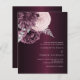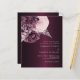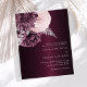 A deep burgundy background decorated with burgundy and pink florals, flowers and faux silver foliage. Personalize and add your names and wedding details.