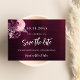 A modern and elegant Save the Date for a 50th birthday party. A deep burgundy gradient background decorated with flowers and faux silver foliage. Personalize and add a date and name. The text: Save the Date is written with a large trendy hand lettered style script.