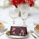 Back: space for you to write by hand the name's of your guests and table number. Burgundy background