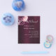 A dark gradient burgundy background. Decorated with burgundy and pink flowers, roses and faux silver foliage.