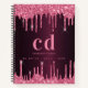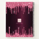 A burgundy faux metallic looking background with cherry pink faux glitter drips, paint dripping look. Personalize and add your monogram initials, name and a title.