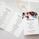 This burgundy pink navy floral folded wedding program is perfect for a rustic wedding. The design features watercolor pink, blush, navy, blue and burgundy peonies, roses with green foliage neatly assembled into elegant bouquets.