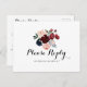 This burgundy pink navy floral menu choice rsvp postcard is perfect for a rustic wedding. The design features watercolor pink, blush, navy, blue and burgundy peonies, roses with green foliage neatly assembled into elegant bouquets.