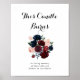 This burgundy pink navy floral candle burns sign is perfect for a rustic wedding. The design features watercolor pink, blush, navy, blue and burgundy peonies, roses with green foliage neatly assembled into elegant bouquets.