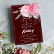 Burgundy pink silver glitter peony floral Wedding Invitation