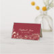 Modern, elegant, chic red burgundy wedding place card with gold flowers.